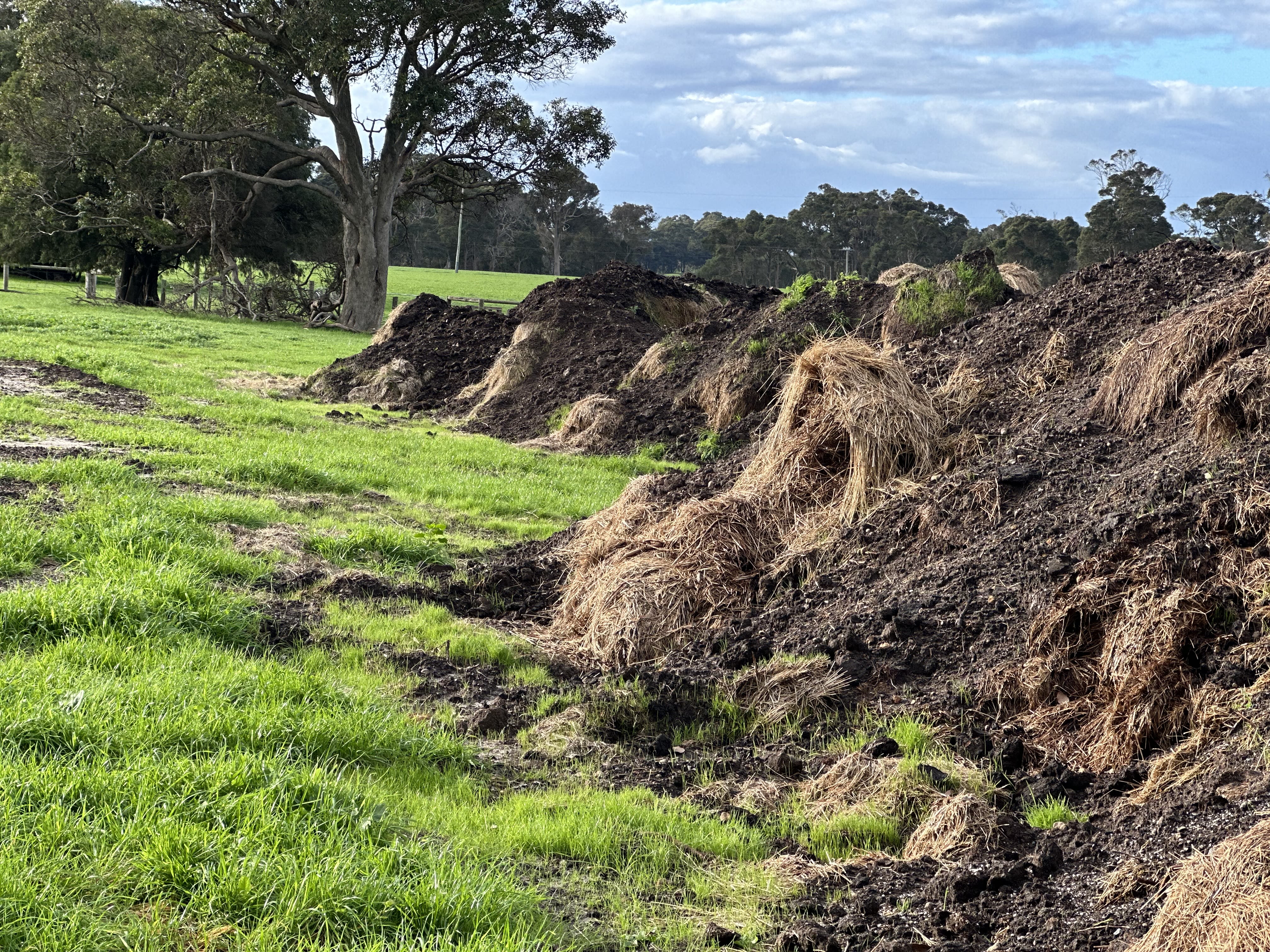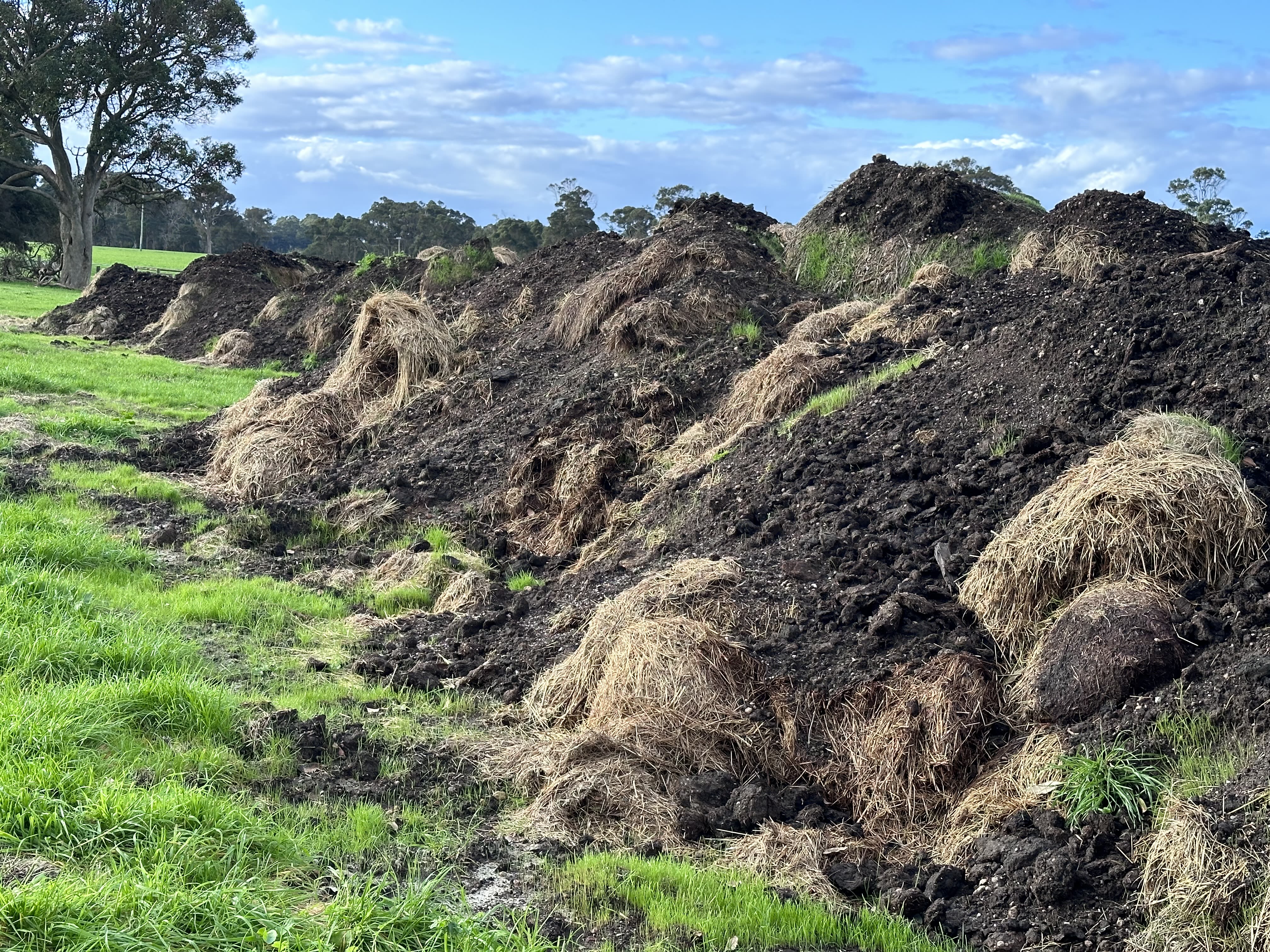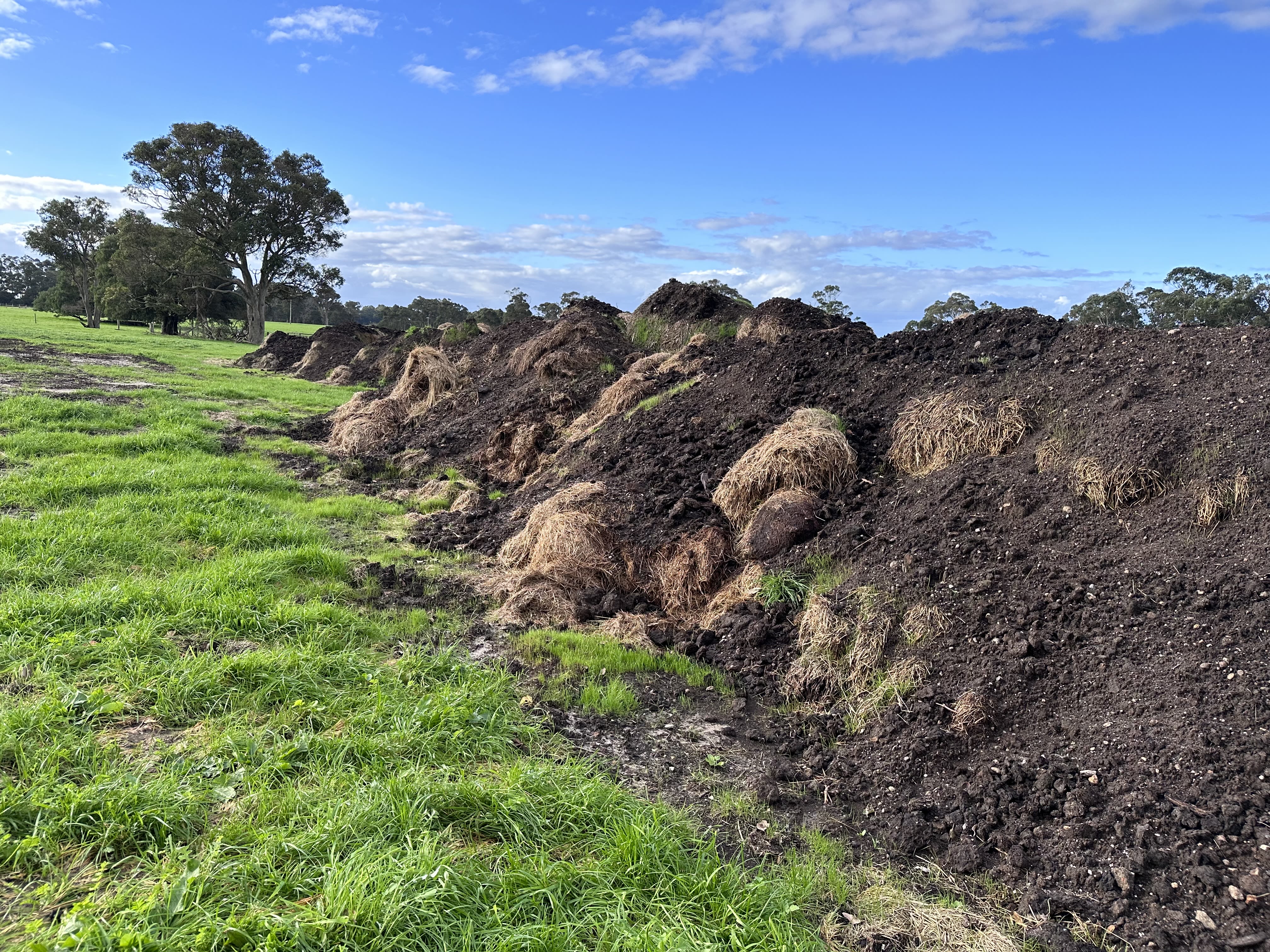 He also purchased 125 tonnes of cow manure, which he added to the grass rolls when they were on site in his paddocks (he was careful to only do this after the summer heat to avoid the risk of spontaneous combustion in the warmer temperatures.)