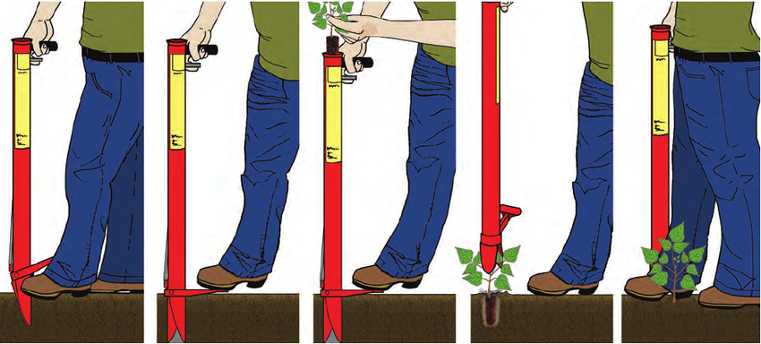 Planting was undertaken with pottiputkis (planting tool) and a small hand held auger depending on the species requirements and seedling pot size.
