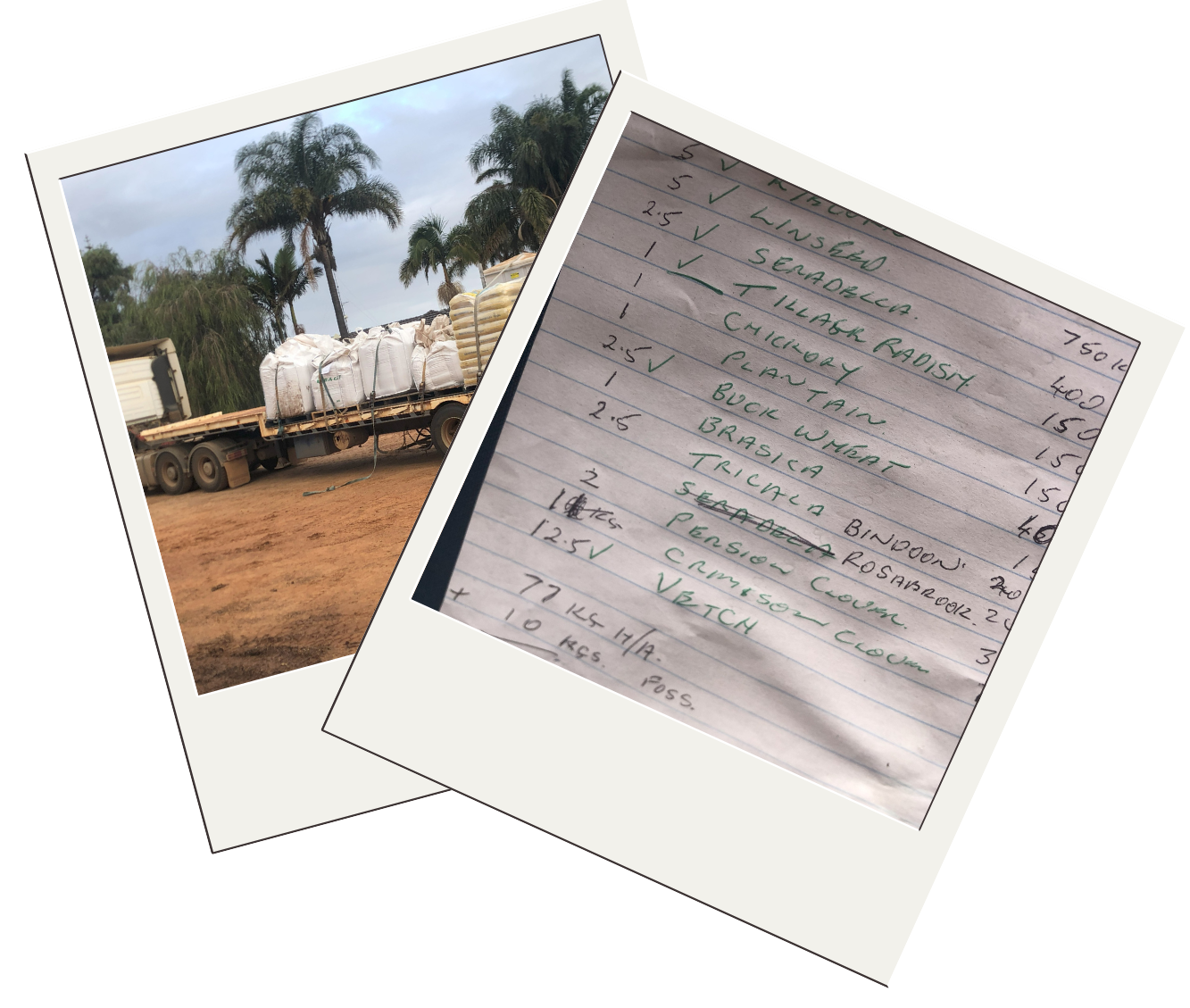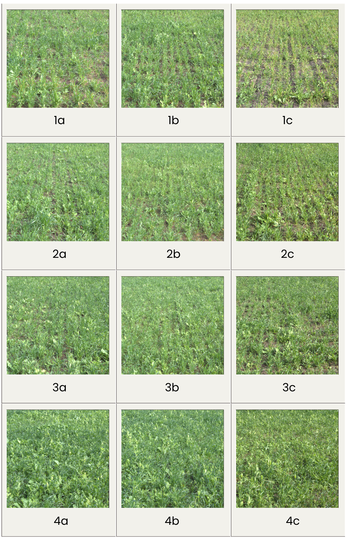 Step 3. A cover crop mix was sown across all the program strips. Different fertility treatments including seed coatings, planting furrow liquids, broadcast fertilisers and foliar treatments were applied to the different programs (see details below). The control program didn’t get any inputs other than the lime.
