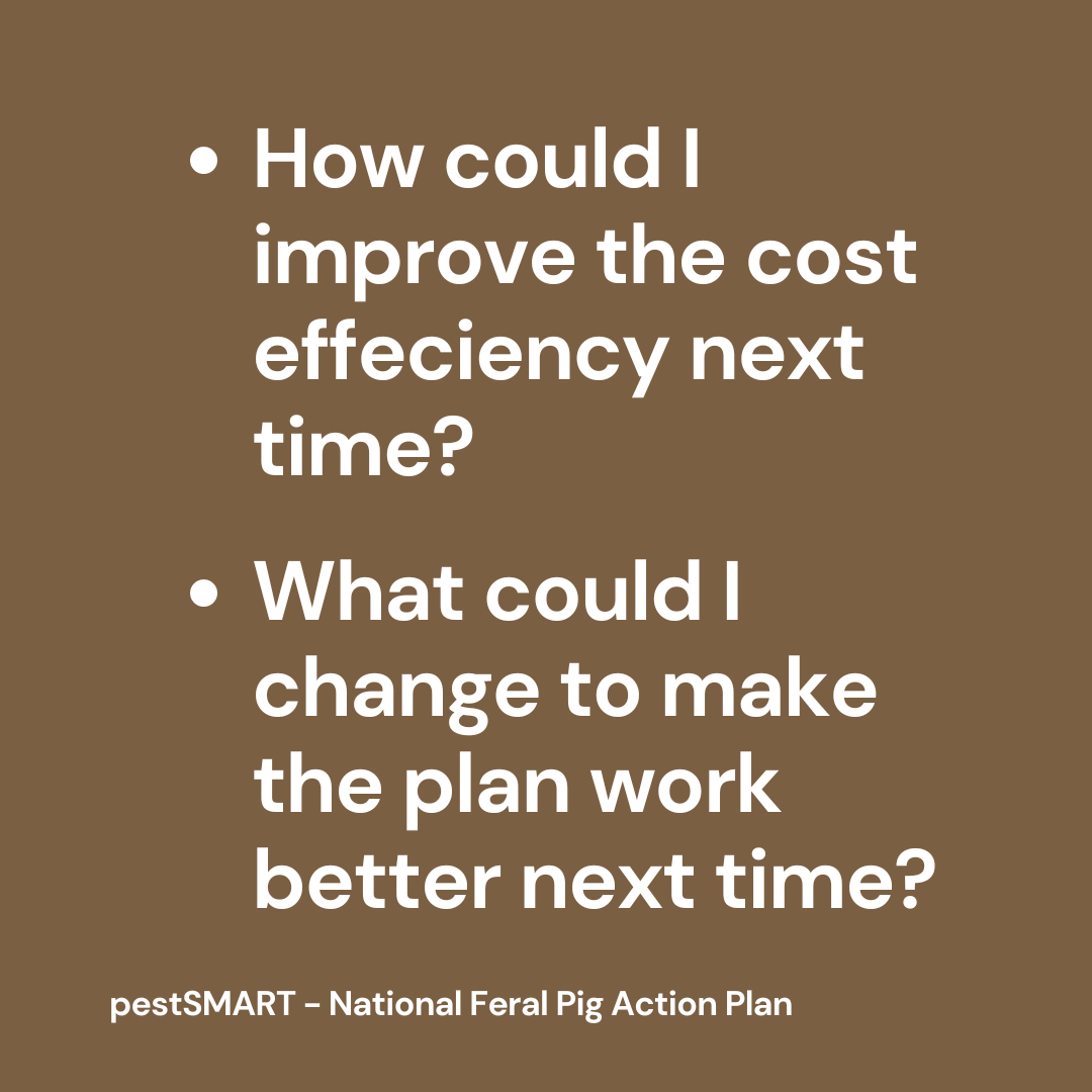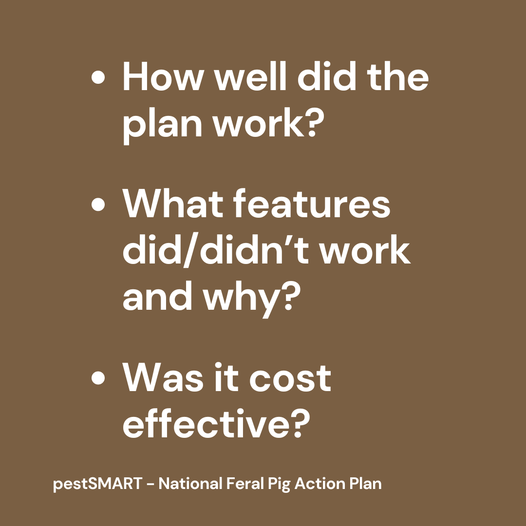 Performance monitoring help assess the effectiveness of a control methods based on your set objectives. It's not based on visual sightings of pigs but rather the signs and damage of feral pigs.