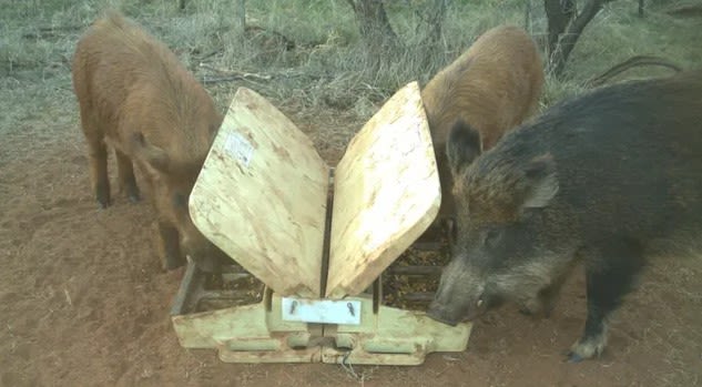 Setting baits when it's dry will increase their effectiveness. Feral pigs tend to congregate around permanent water points and are more likely to eat baits when food sources are scarce.