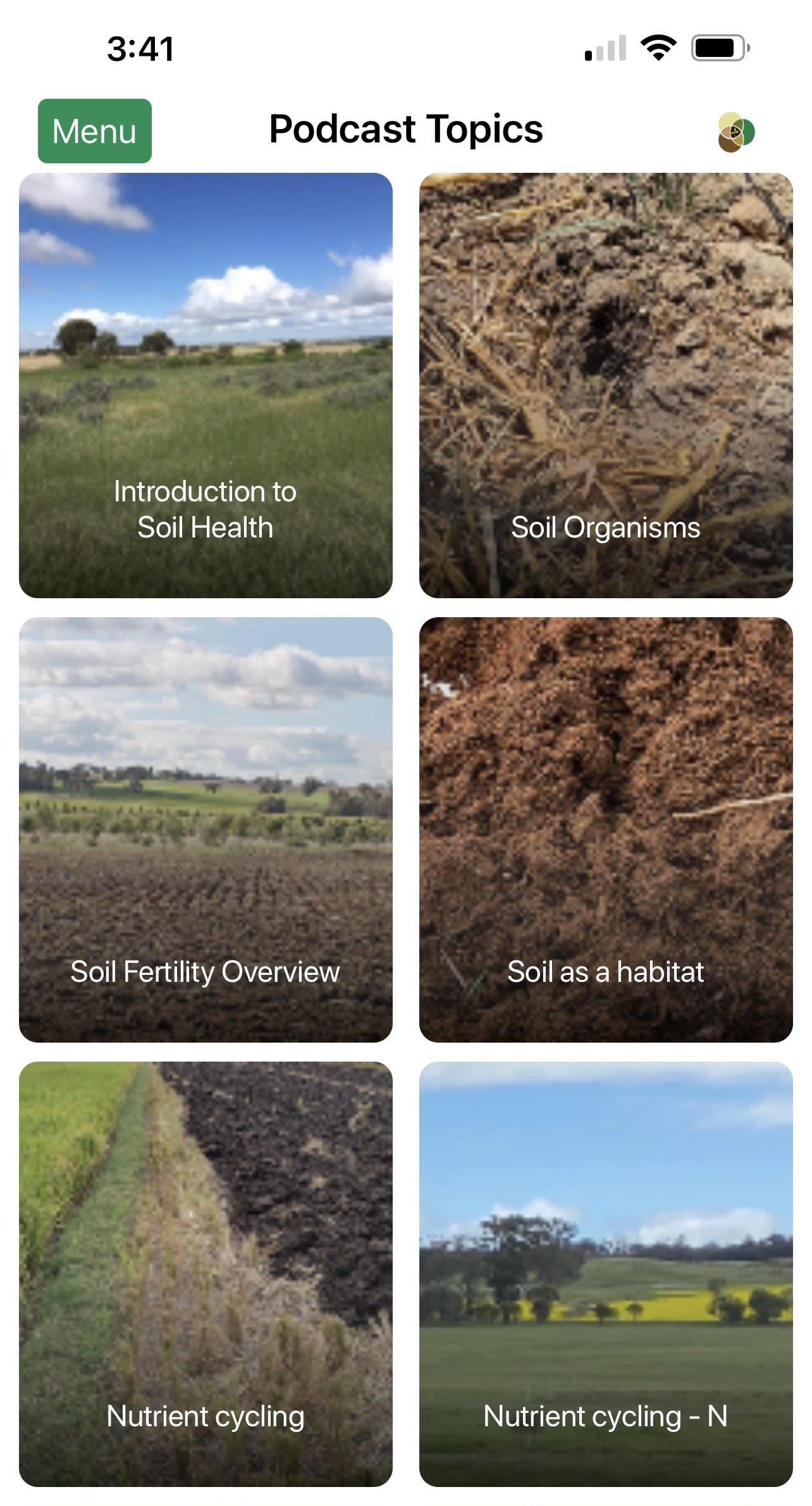 It includes an eBook (Soils Are Alive) - a summary of key points about soil health, a range of podcasts that expand on the key points and a series of 7 animated videos.