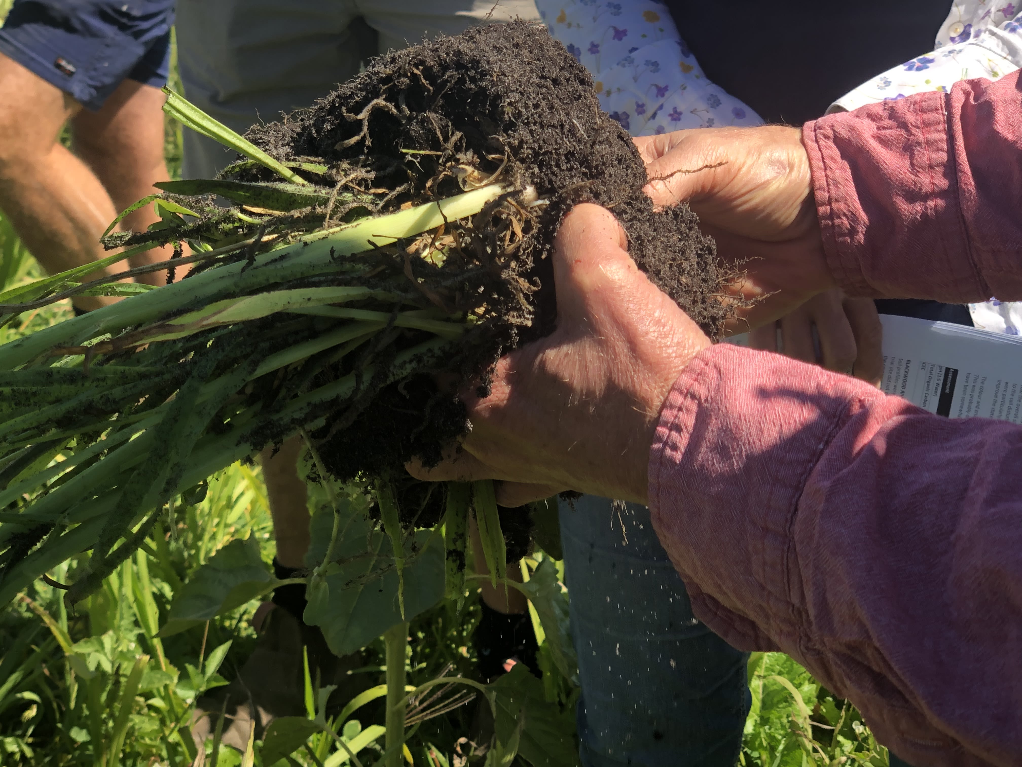 Healthy rhizosheaths under warm season multispecies mix at a Scott River Dairy Farm.
